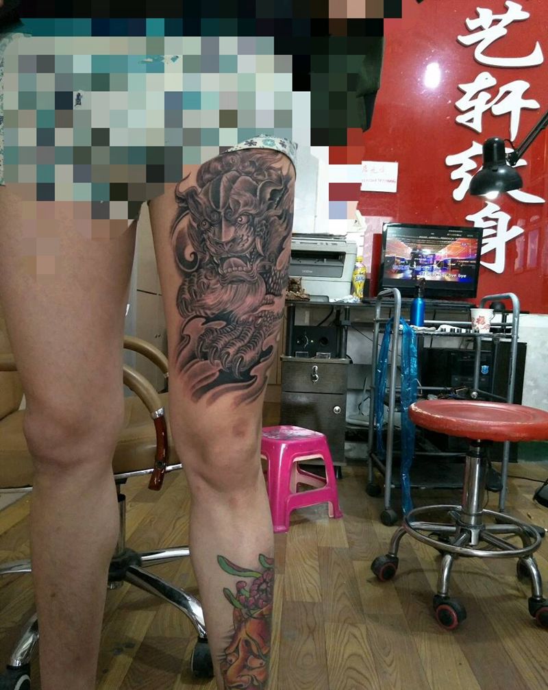 • T网红王老大花腿龙纹身图片_腿部新传统纹身图案