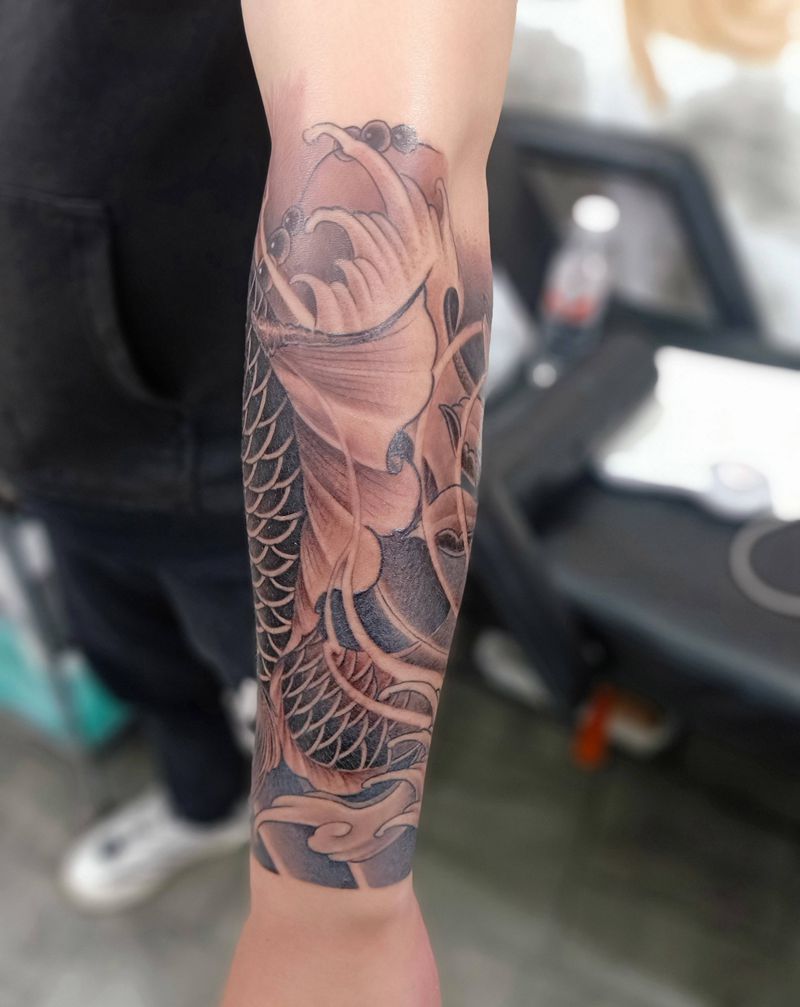 当前位置: 首页 >甘肃省天水市纹身店-针艺轩纹身纹身图案>鲤鱼纹身图片_手臂纹身图案