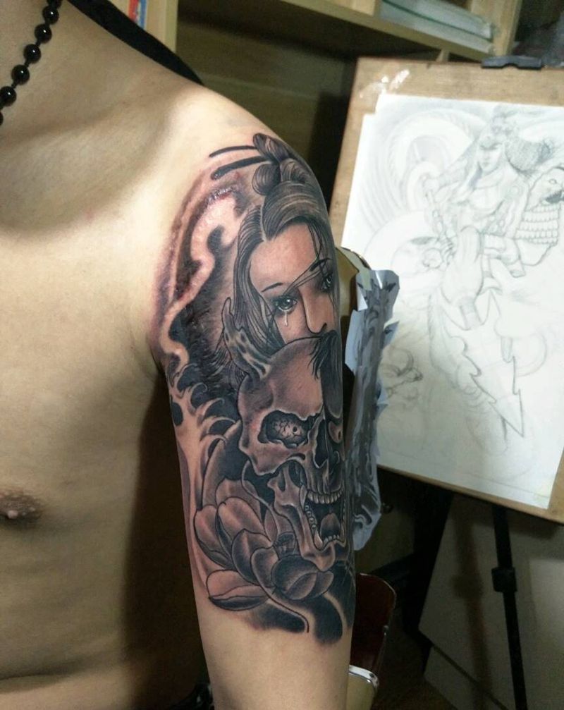 当前位置: 首页 >甘肃省天水市纹身店-针艺轩纹身纹身图案>单色艺妓。。。纹身图片