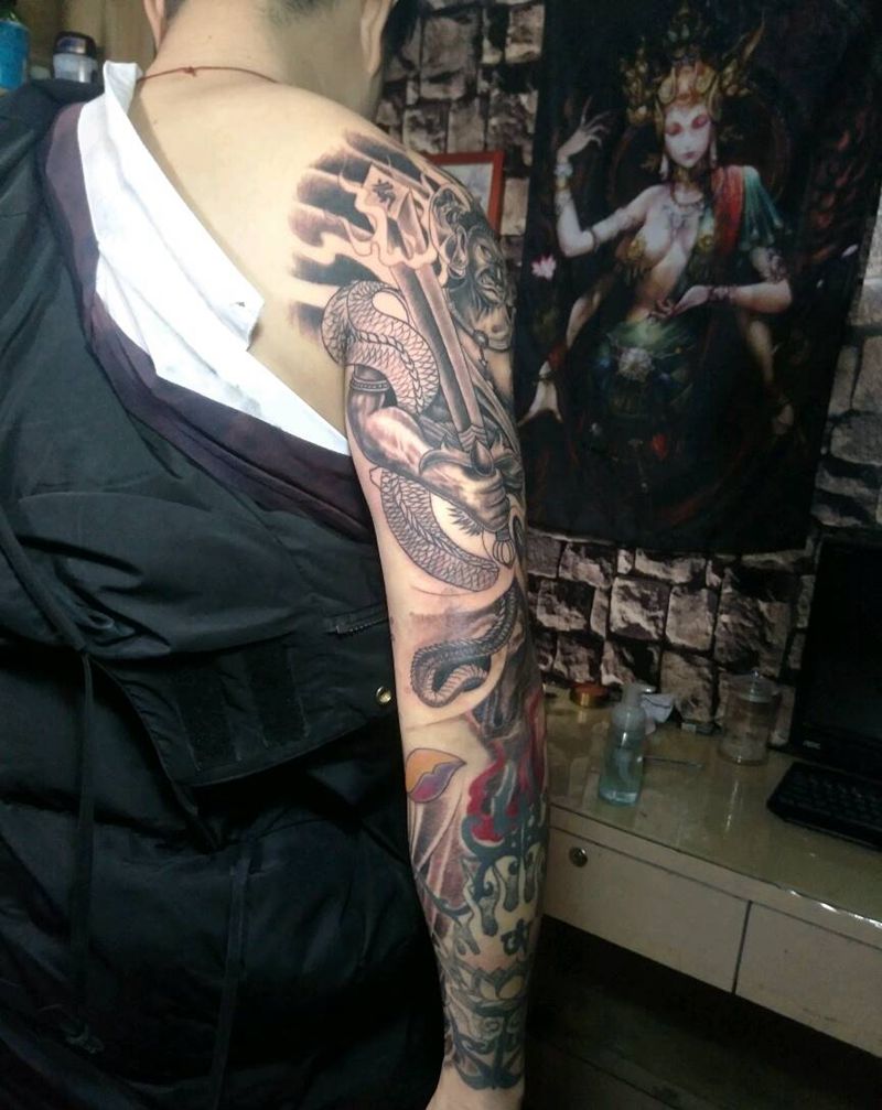 没做完的花臂。。。纹身图片