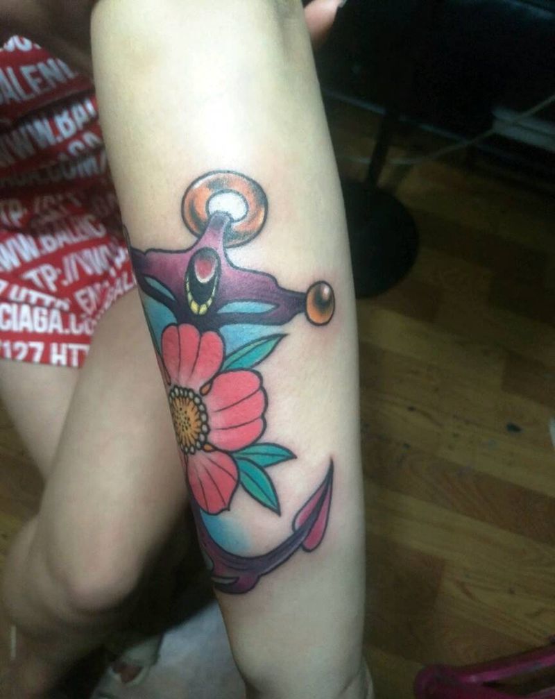 当前位置: 首页 >甘肃省天水市纹身店-针艺轩纹身纹身图案>彩色船锚小花花纹身图片