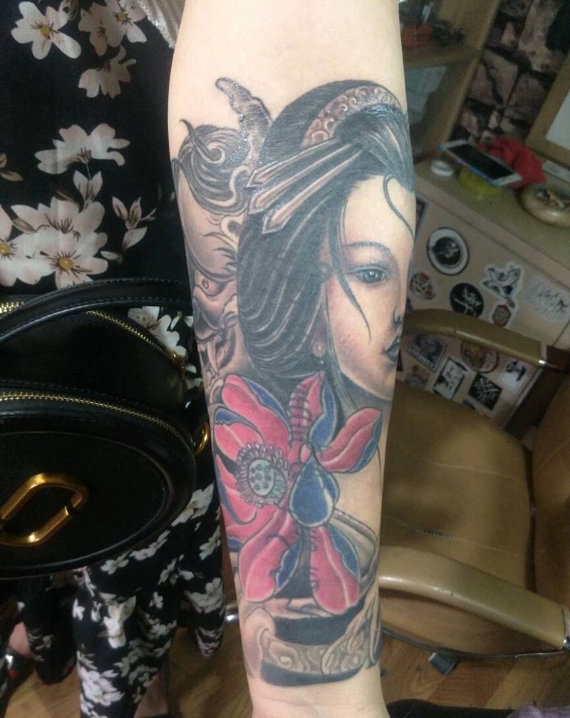 一组15张莲花纹身手