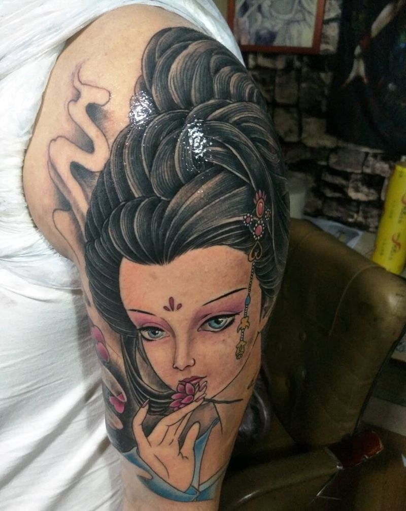 • 女性大花胸纹身_43张霸气漂亮的女性大花胸纹身图案作品