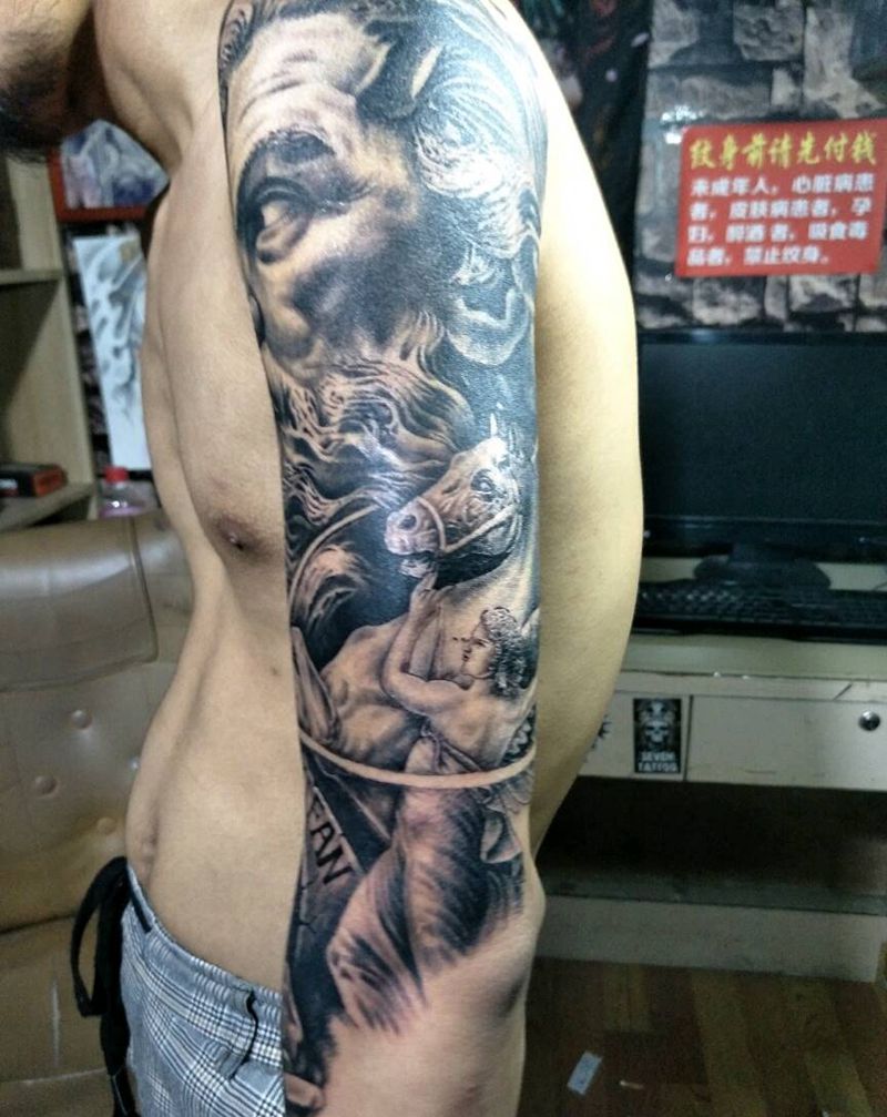 当前位置: 首页 >甘肃省天水市纹身店-针艺轩纹身纹身图案>欧美花臂待续纹身图片