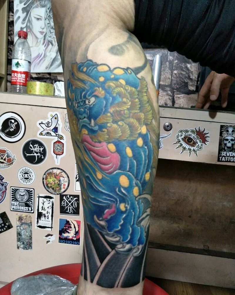 • T网红王老大花腿龙纹身图片_腿部新传统纹身图案