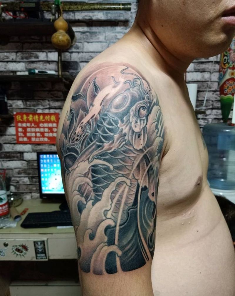 当前位置: 首页 >甘肃省天水市纹身店-针艺轩纹身纹身图案>鱼纹身图片_手臂新传统纹身图案