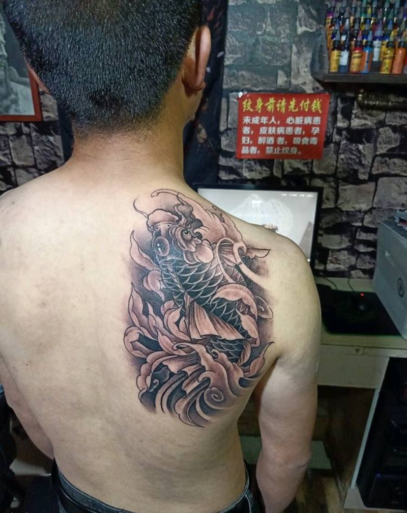 当前位置: 首页 >甘肃省天水市纹身店-针艺轩纹身纹身图案>鲤鱼纹身图片_背部新传统纹身图案