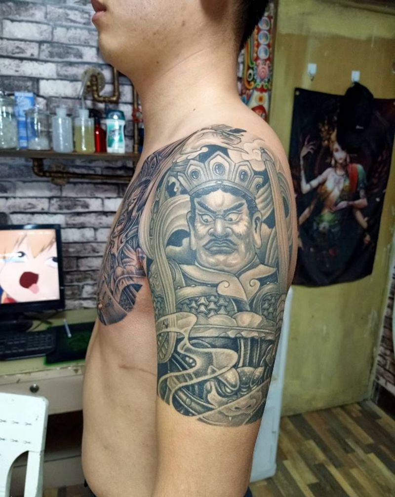 当前位置: 首页 >甘肃省天水市纹身店-针艺轩纹身纹身图案>天王半甲纹身图片_胸部手臂纹身图案