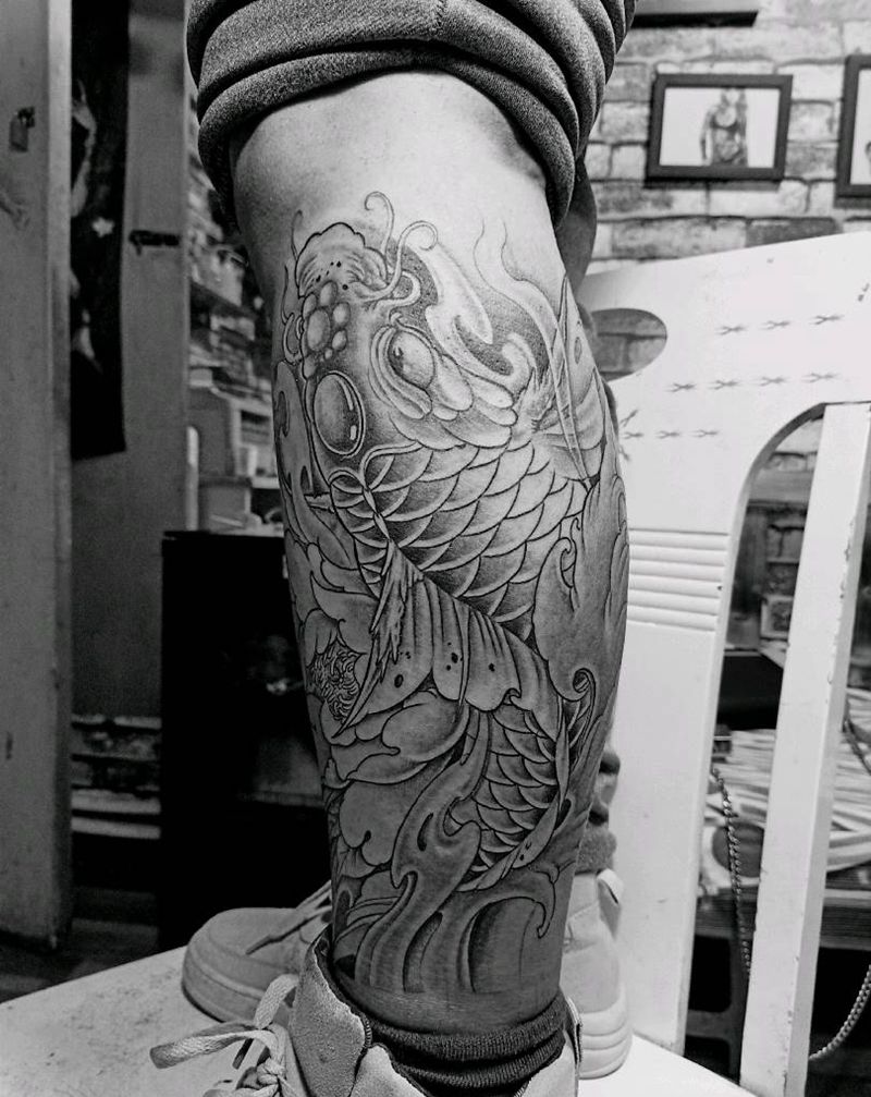 当前位置: 首页 >甘肃省天水市纹身店-针艺轩纹身纹身图案>鲤鱼纹身图片_腿部新传统纹身图案