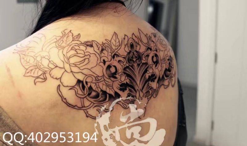 • 纹身吧推荐的披肩图腾半胛纹身图案作品展示