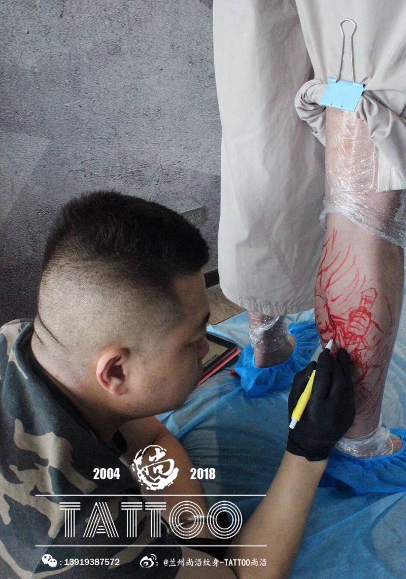 • T网红王老大花腿龙纹身图片_腿部新传统纹身图案