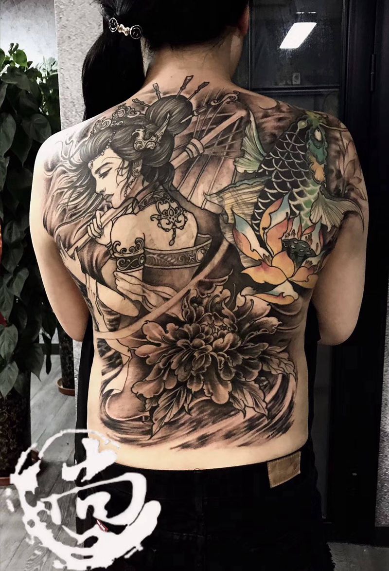 黑灰满背纹身图案