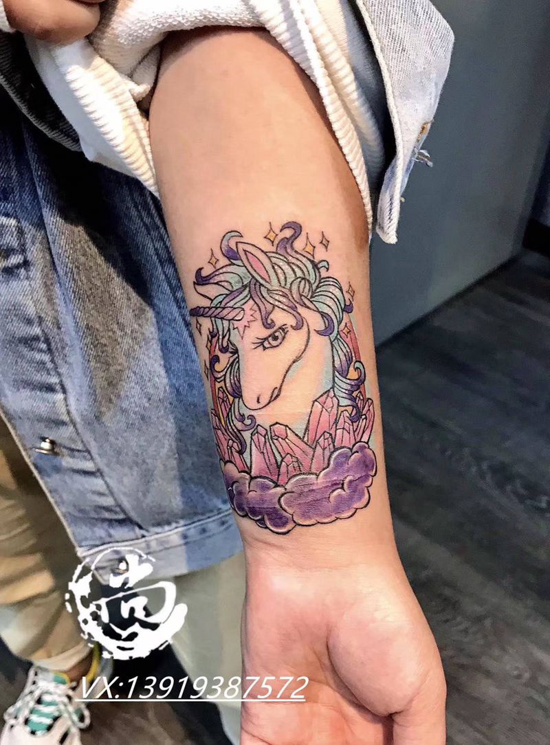 天马彩色遮盖纹身图片_手部New School纹身图案