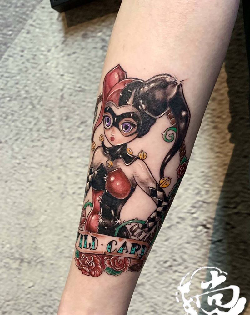 当前位置: 首页 >甘肃省兰州市纹身店-中信大厦纹身图案>小丑女纹身图片_手臂New School纹身图案