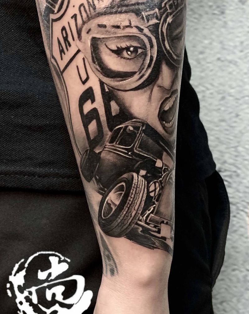 欧美老爷赛车大妞纹身图片_手臂欧美写实纹身图案