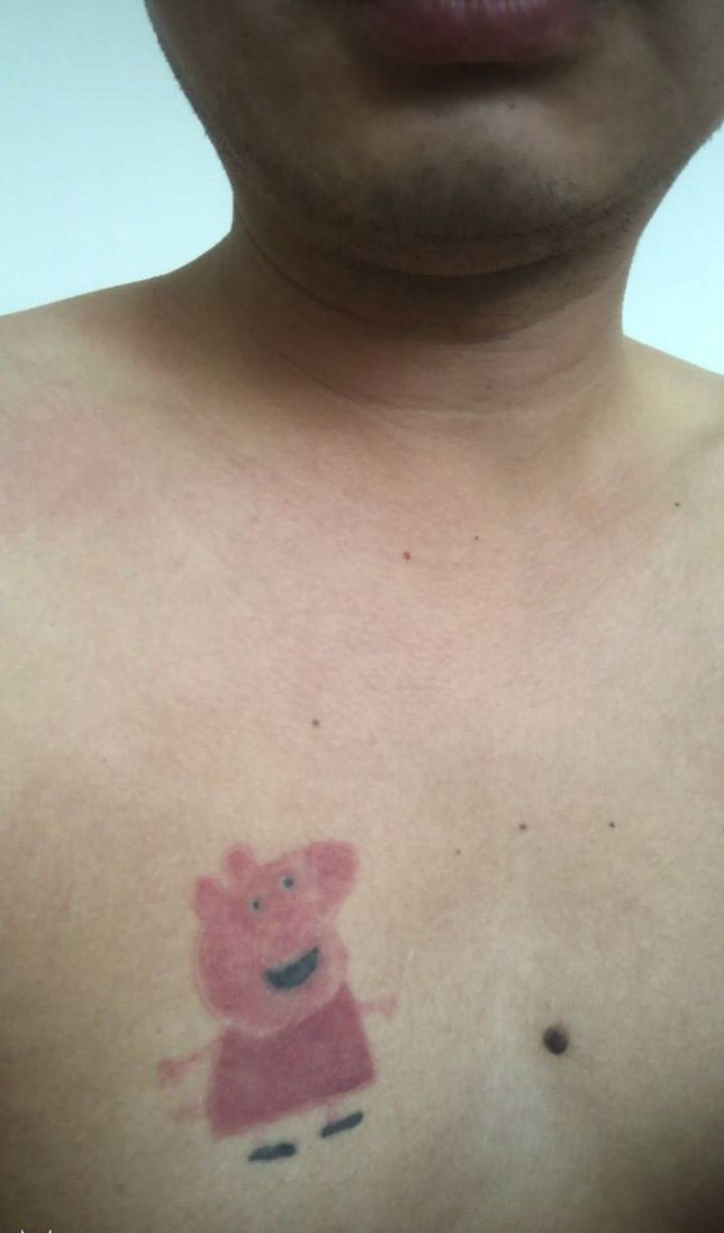 • T包小腿吹火男+阿多福纹身图片_腿部老传统新传统吹火男阿