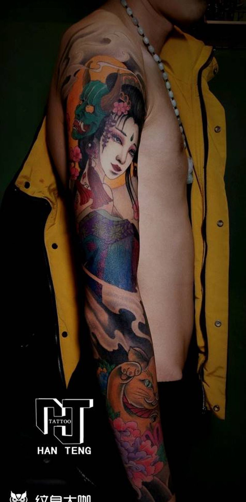当前位置: 首页 >甘肃省天水市纹身店-瀚腾刺青纹身图案>艺伎招财猫花臂纹身图片_手臂新传统水彩艺伎招财猫纹身图案