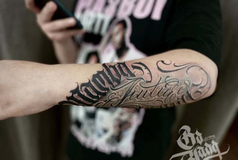 当前位置: 首页 >甘肃省兰州市纹身店-兰州惟刺青纹身图案>曼巴纹身图片_手臂花体字纹身图案