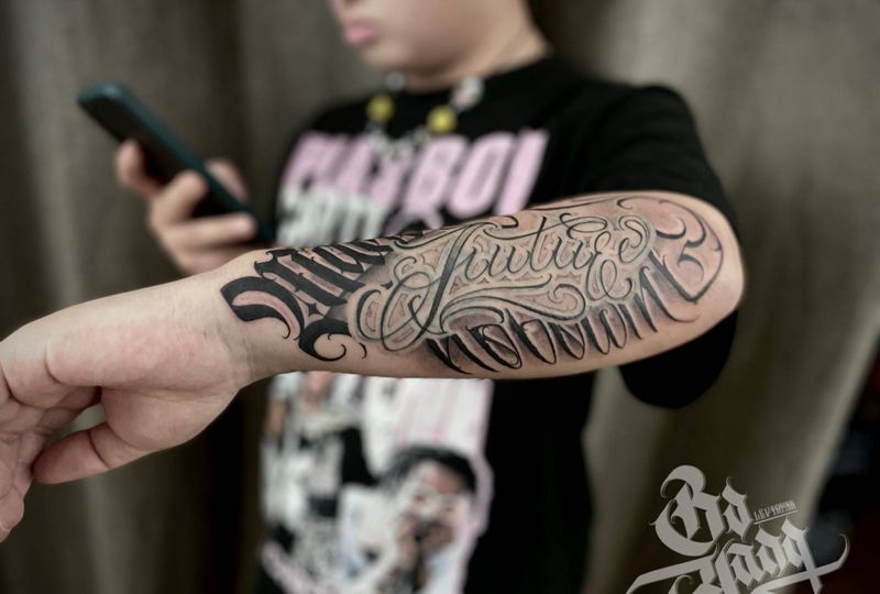 当前位置: 首页 >甘肃省兰州市纹身店-兰州惟刺青纹身图案>曼巴纹身图片_手臂花体字纹身图案