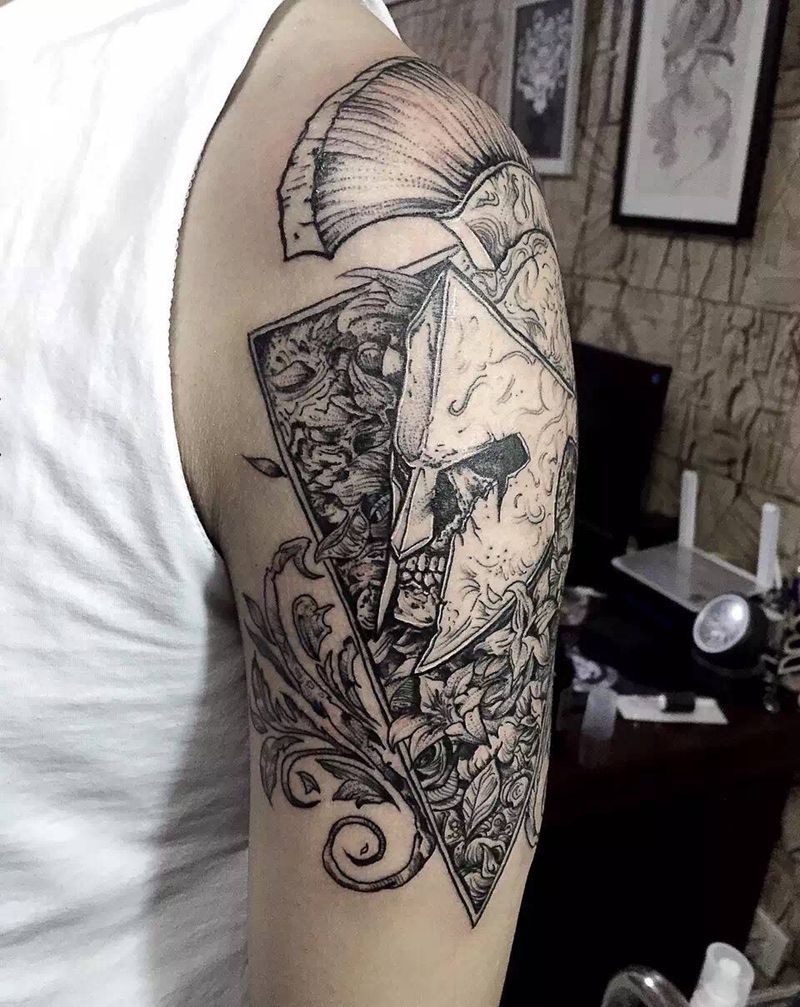 骷髅角斗士纹身图片_欧美成品纹身图案