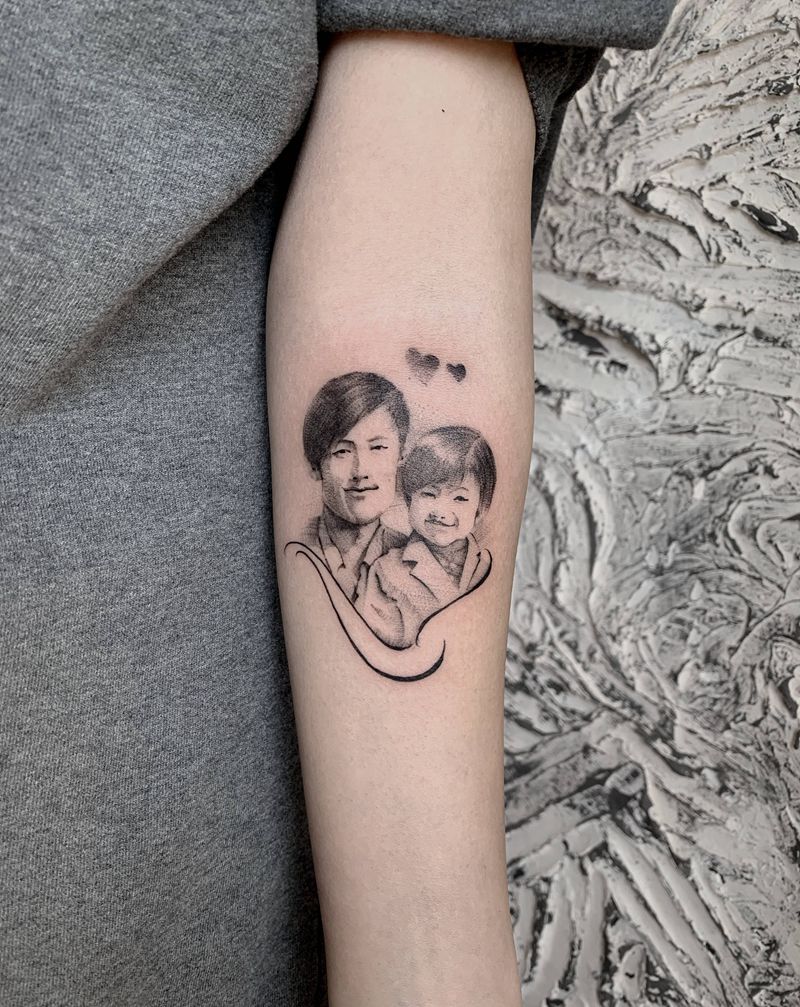 • T家庭图,一家四口生日纪念!纹身图片_手臂纹身图案