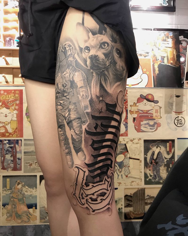 • T网红王老大花腿龙纹身图片_腿部新传统纹身图案