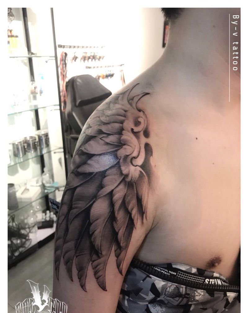 • 纹身吧推荐的披肩图腾半胛纹身图案作品展示