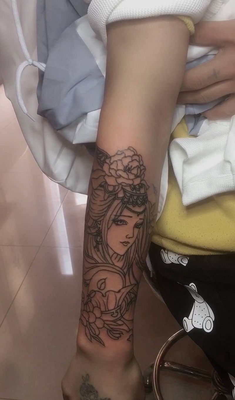 艺妓(线条 )纹身图片_手臂新传统纹身图案