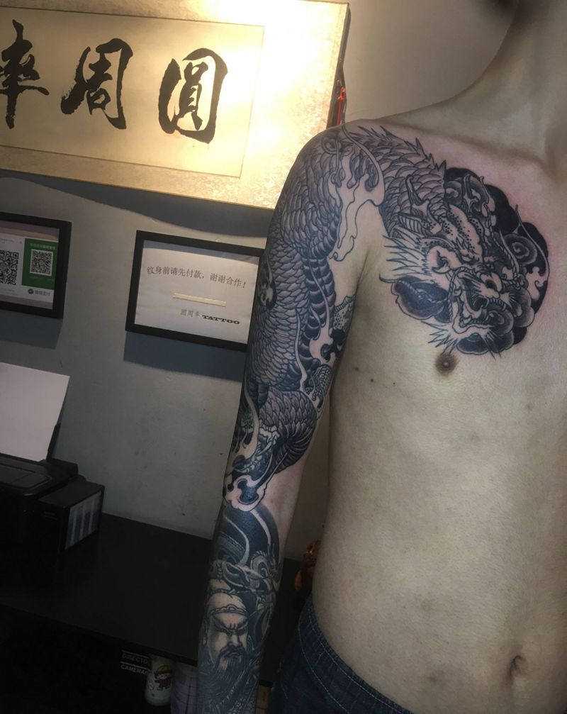 当前位置: 首页 >甘肃省天水市纹身店-圆周率纹身纹身图案>过肩龙纹身图片_手臂胸部新传统纹身图案
