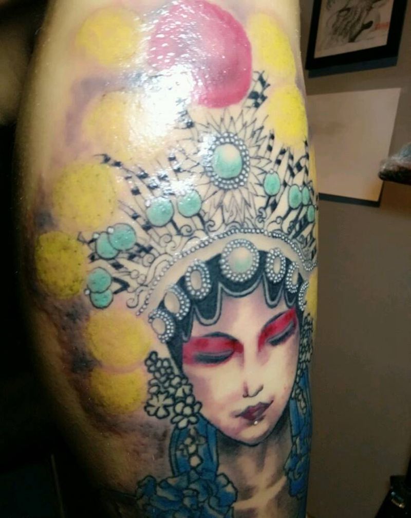 当前位置: 首页 >甘肃省天水市纹身店-圆周率纹身纹身图案>小腿花旦多角度纹身图片