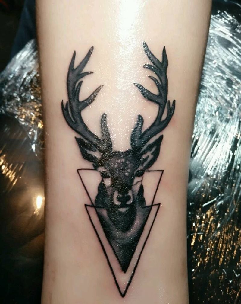当前位置: 首页 >甘肃省天水市纹身店-圆周率纹身纹身图案>小腿几何麋鹿纹身图片