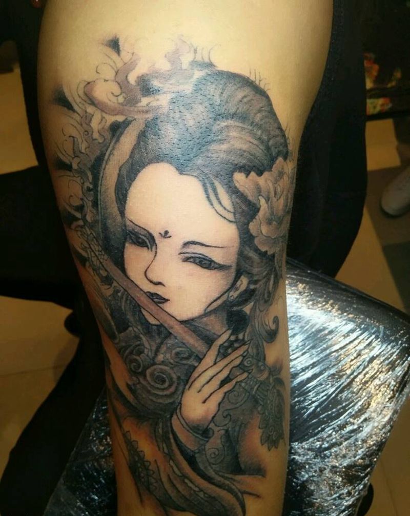 大臂艺妓纹身图片