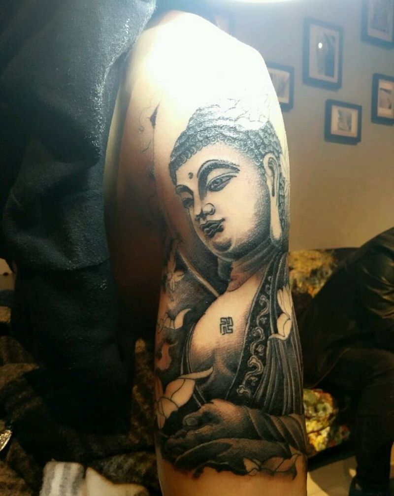 大日如来加莲花坐台接花臂纹身图片