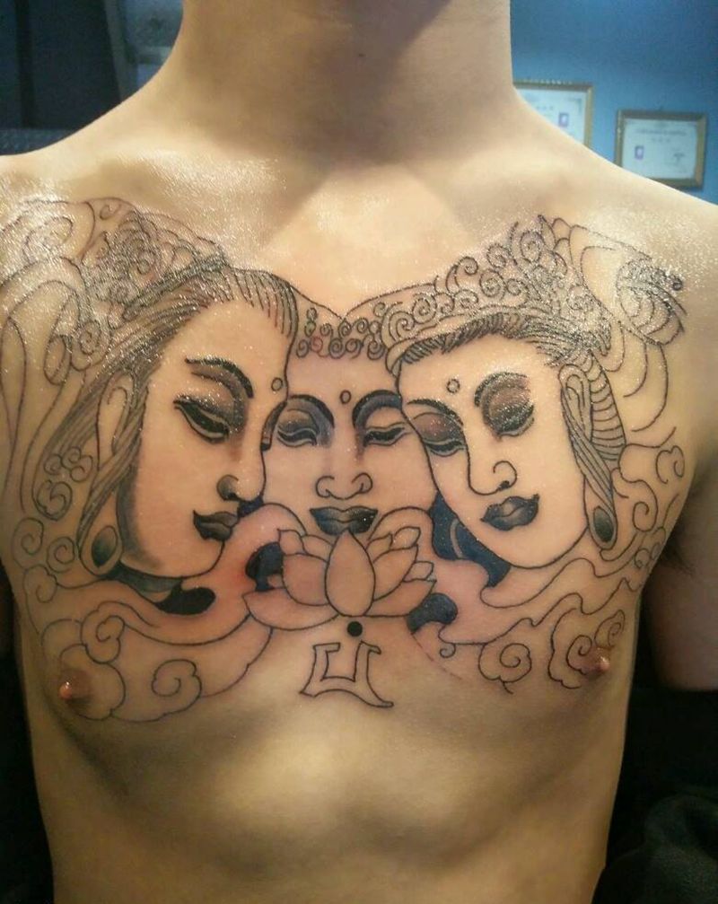 当前位置: 首页 >甘肃省天水市纹身店-圆周率纹身纹身图案>花胸三面佛纹身图片