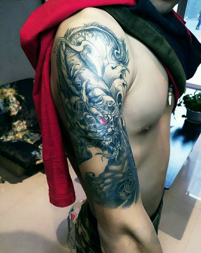 • 纹身吧推荐的披肩图腾半胛纹身图案作品展示