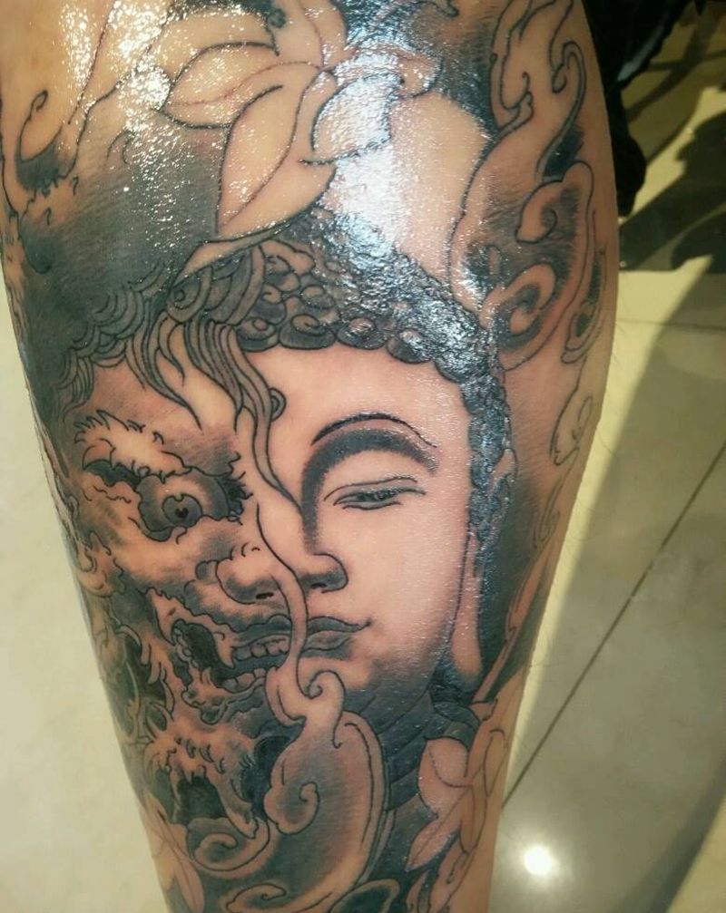 小腿善恶纹身图片