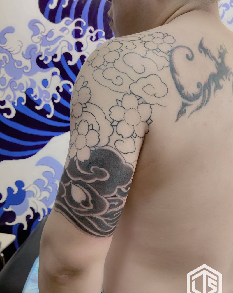 当前位置: 首页 >甘肃省兰州市纹身店-纹路刺青纹身图案>祥云樱花半胛短袖纹身图片_胸部臀部老传统纹身图案