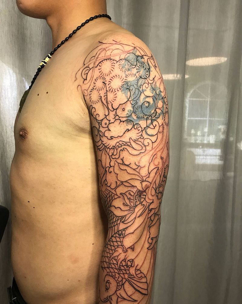 当前位置: 首页 >甘肃省兰州市纹身店-纹路刺青纹身图案>唐狮鲤鱼纹身图片_手臂新传统纹身图案