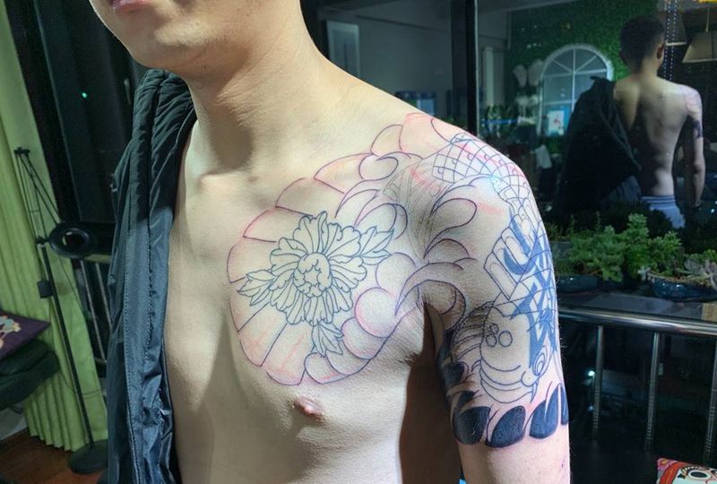 当前位置: 首页 >甘肃省兰州市纹身店-纹路刺青纹身图案>锦鲤遮盖,初步纹身图片