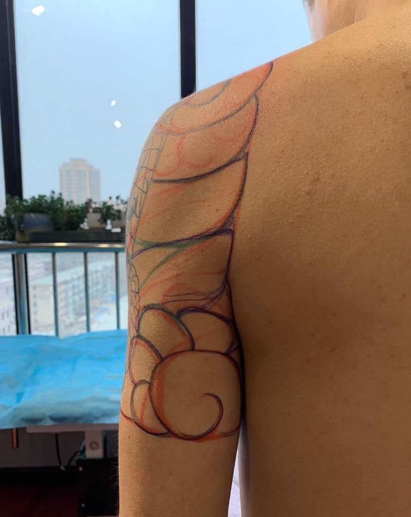 当前位置: 首页 >甘肃省兰州市纹身店-纹路刺青纹身图案>锦鲤遮盖,初步纹身图片