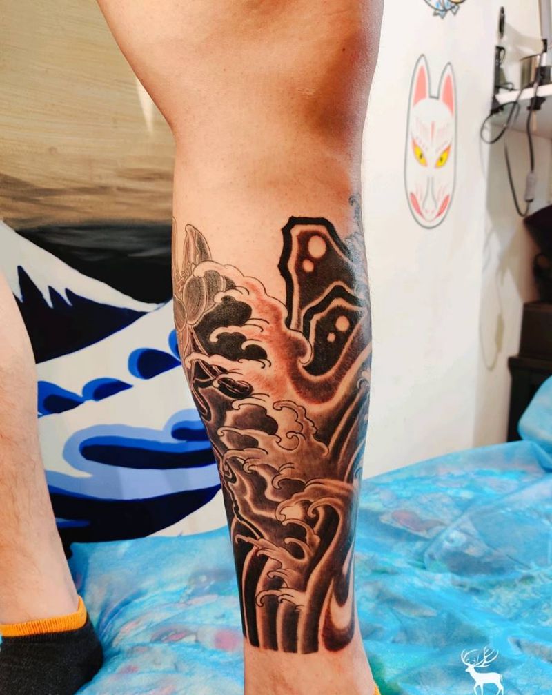 • T网红王老大花腿龙纹身图片_腿部新传统纹身图案