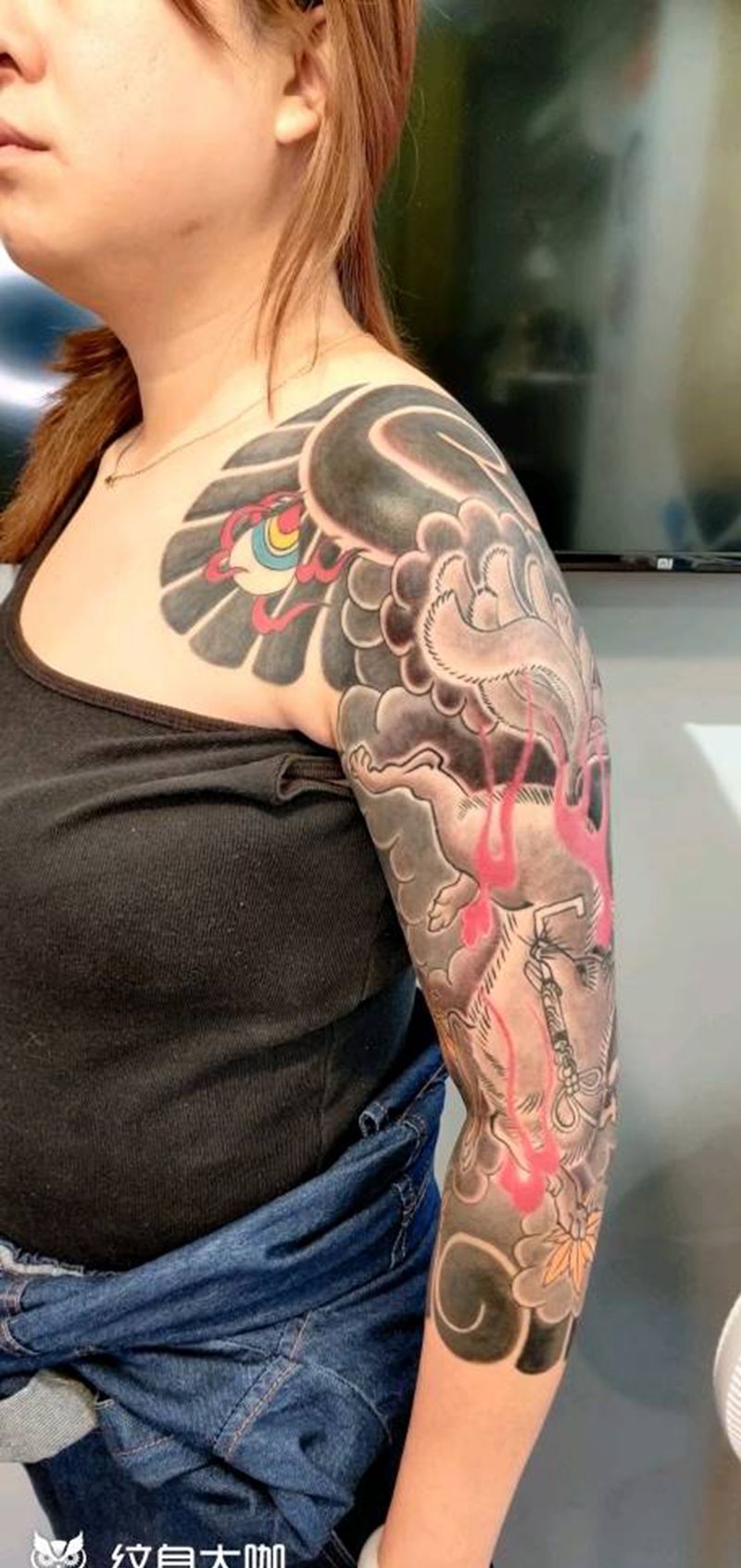 当前位置: 首页 >甘肃省兰州市纹身店-纹路刺青纹身图案>七分袖九尾狐纹身图片_肩部手臂老传统纹身图案