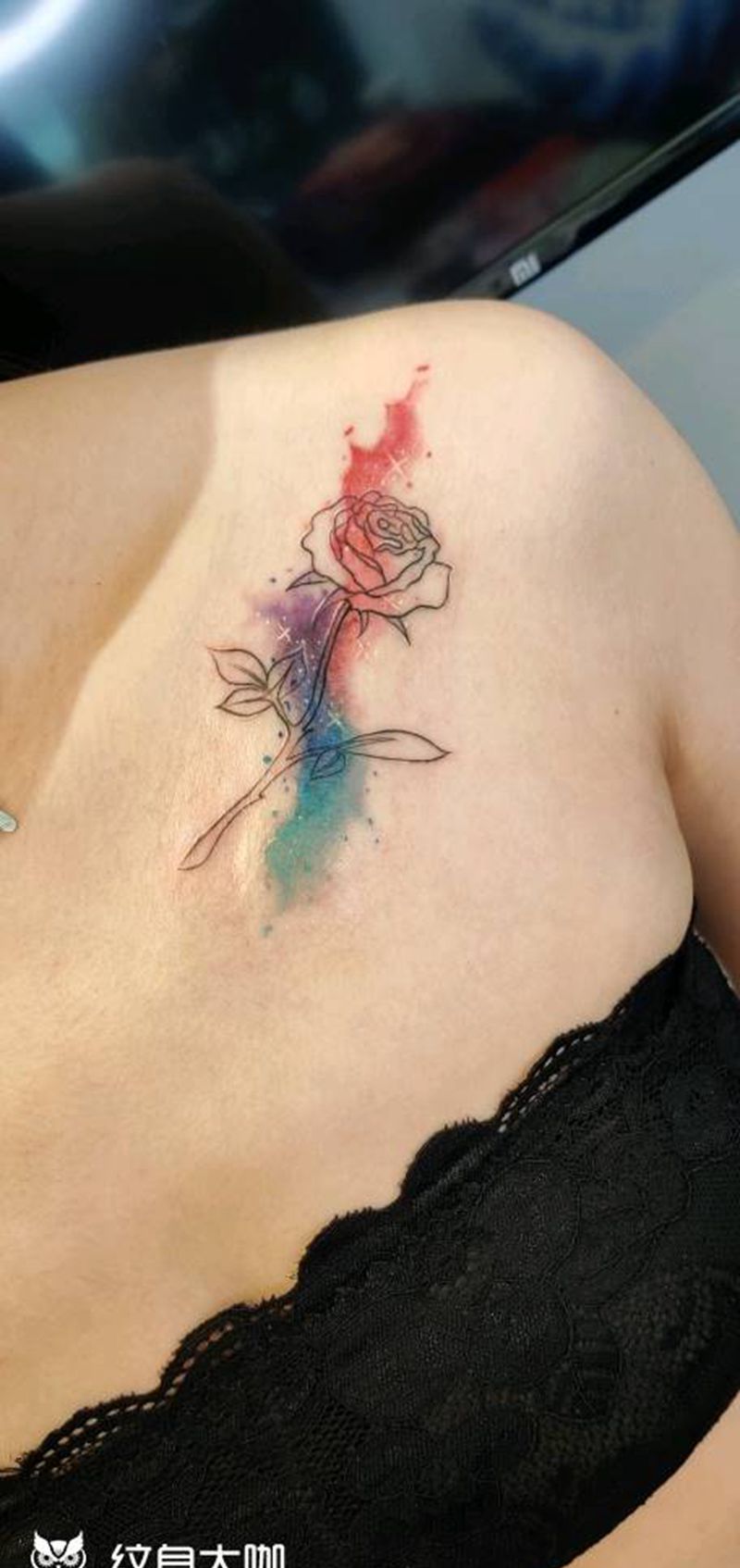 当前位置: 首页 >甘肃省兰州市纹身店-纹路刺青纹身图案>玫瑰纹身图片_肩部水彩水墨纹身图案