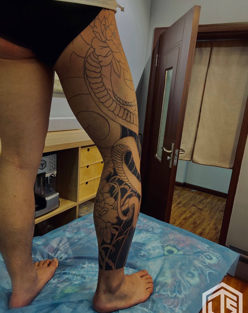 当前位置: 首页 >甘肃省兰州市纹身店-纹路刺青纹身图案>传统蛇花腿纹身图片_腿部老传统纹身图案