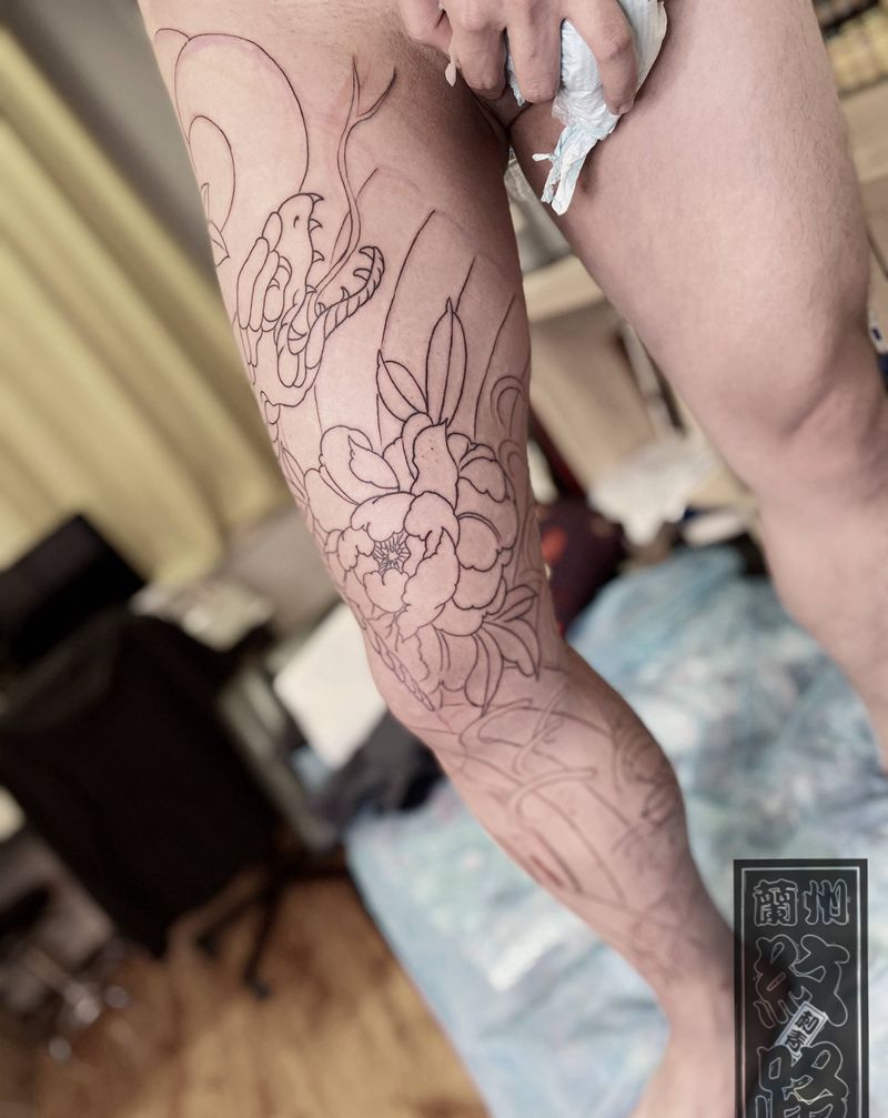 • T网红王老大花腿龙纹身图片_腿部新传统纹身图案