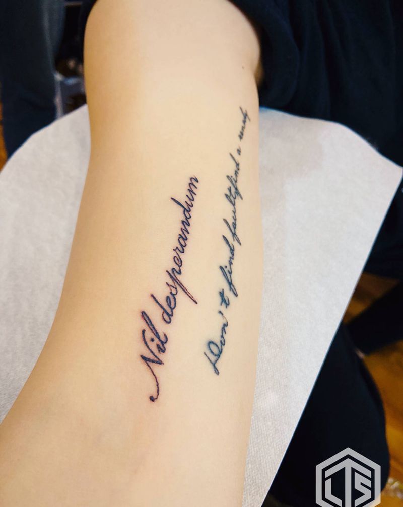 当前位置: 首页 >甘肃省兰州市纹身店-纹路刺青纹身图案>拉丁语字母纹身图片_手臂花体字纹身图案