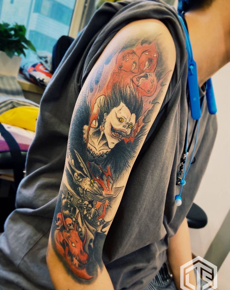 死亡笔记纹身图片_手臂水彩纹身图案