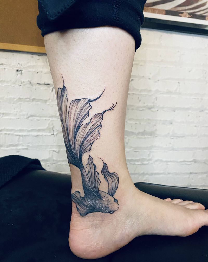 遮盖纹身图片_脚部腿部点刺纹身图案