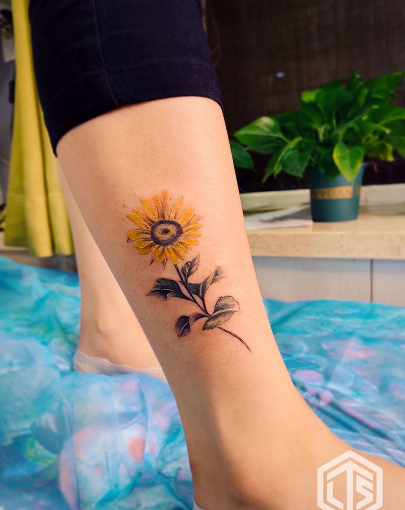 当前位置: 首页 >甘肃省兰州市纹身店-纹路刺青纹身图案>向阳花、太阳月亮纹身图片_腿部新传统欧美写实纹身图案