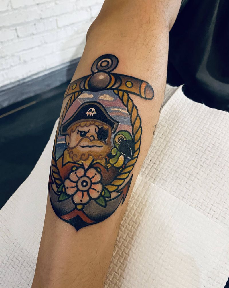 当前位置: 首页 >甘肃省兰州市纹身店-兰州葉雕青艺术工作室纹身图案>海盗船长纹身图片_手臂Old School海绵宝宝纹身图案